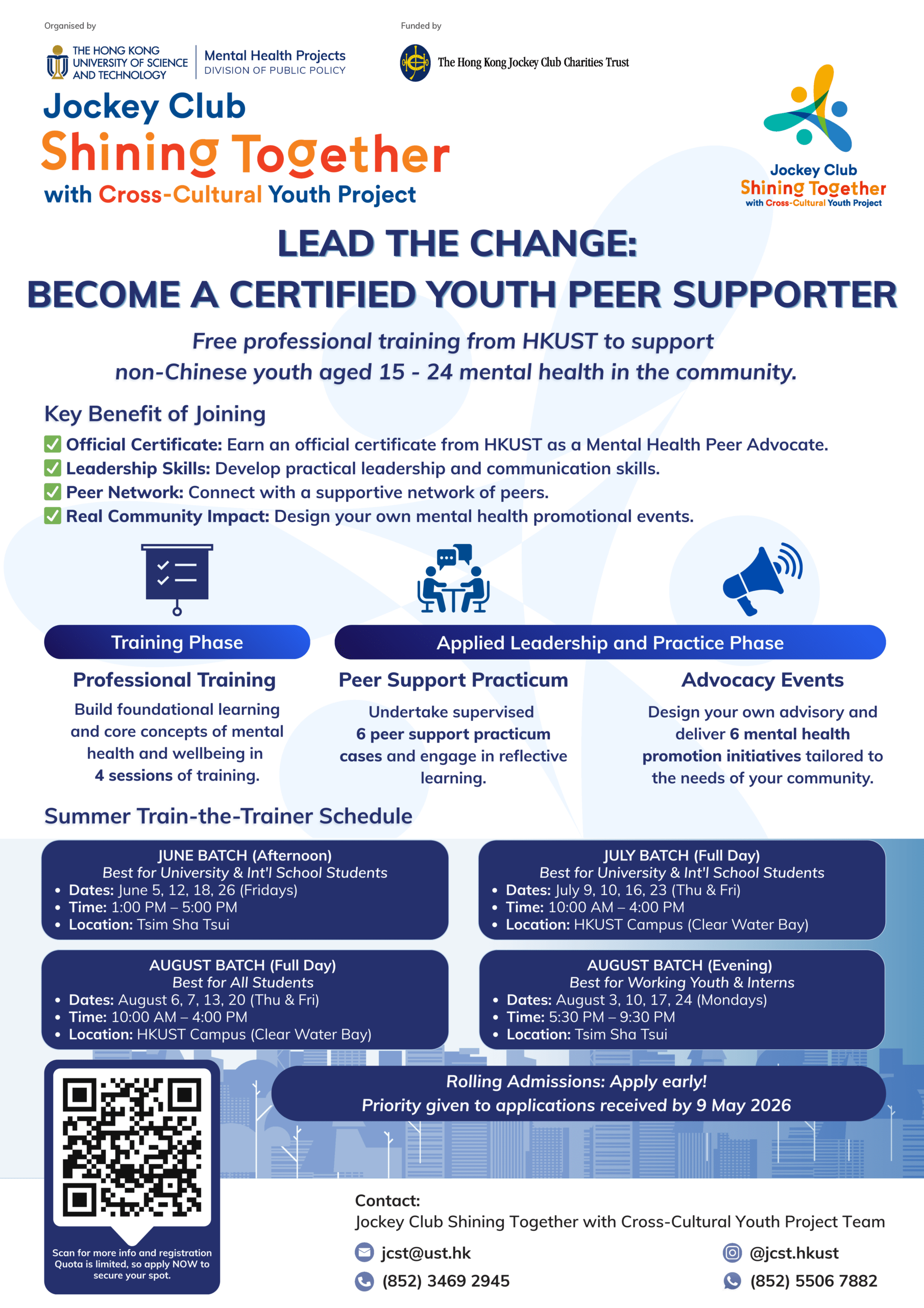The Train-the-Trainer Programme Batch 2 under the Jockey Club Shining Together with Cross-Cultural Youth Project has successfully completed its structured training phase and peer support practicum, marking an important milestone in empowering non-Chinese youth to promote mental wellbeing within their communities.